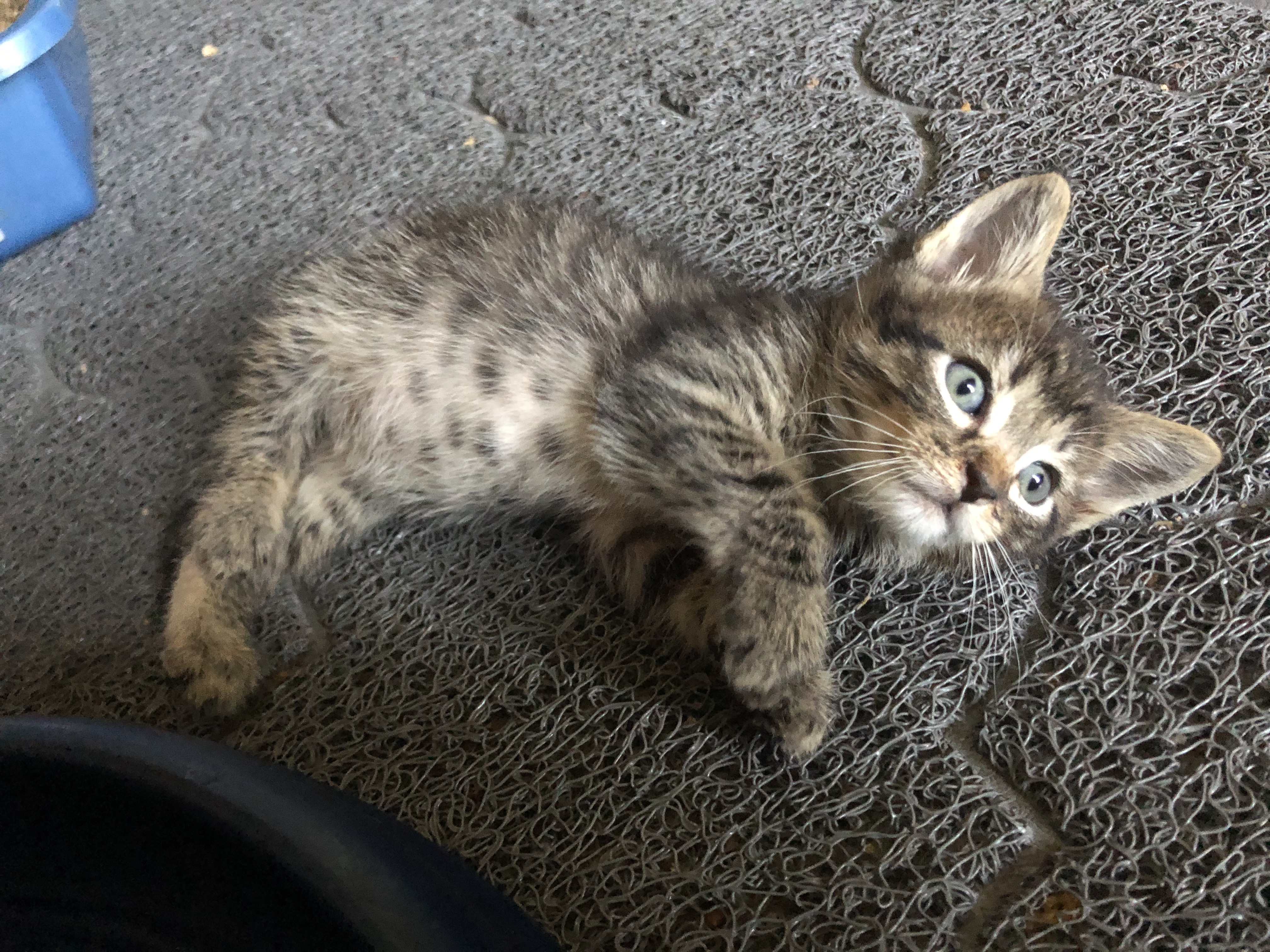 He was one of three male kittens found in the road. They were roughly 4 weeks of age at the time. He is estimated to have a birthday of May 15th 2020. He was neutered, vaccinated and Microchipped.
